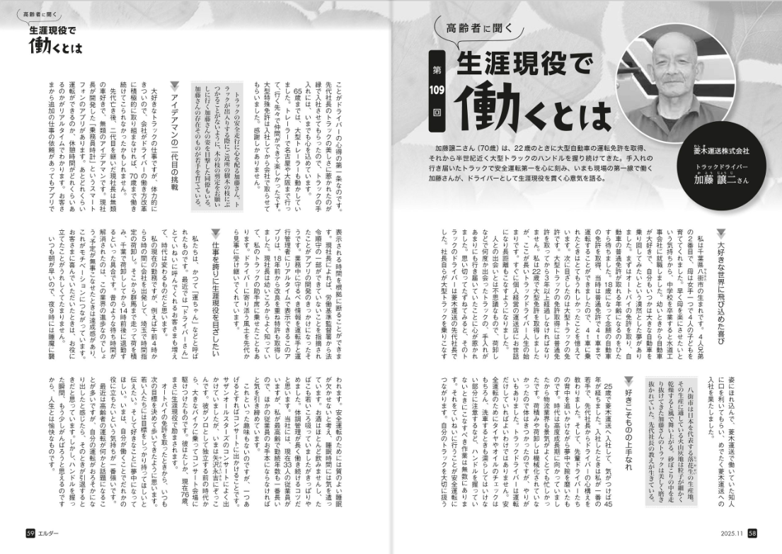 弊社ドライバー 加藤譲二さんのインタビュー記事が『エルダー』に掲載されました